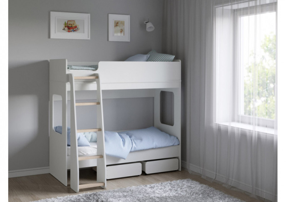 2 ящика внизу кровати обеспечат хранеие игрушек и порядок в комнате. Ящики оборудованы прямохоными колесными опорами.
